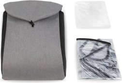 MoMi ESTELLE DAKAR jest dostarczany z zestawem niezwykle praktycznych akcesoriów na każdą porę roku: folią przeciwdeszczową, moskitierą i dopasowaną osłoną na nóżki.