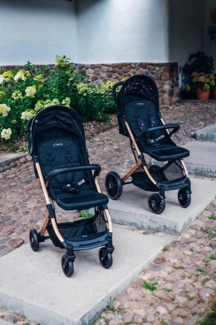 W wózku ESTELLE DAKAR zwrócisz uwagę na subtelny, spójny wzór, który pojawia się po przedłużeniu budki.
