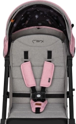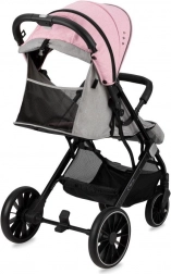 Dzięki dużym kołom – przednie 7", tylne 10" – wózek MoMi ESTELLE DAKAR zyskał terenowy charakter i trafny przydomek DAKAR. Wersja szaro‑różowa będzie idealna na wycieczki z Twoją małą księżniczką.