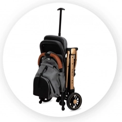 Czy łatwo się składa? Uwierz, to bardzo ważne dla Twojej wygody. MoMi ESTELLE składa się w mgnieniu oka, a do tego ma genialne rozwiązanie – teleskopową rączkę do prowadzenia lub ciągnięcia złożonego wózka!