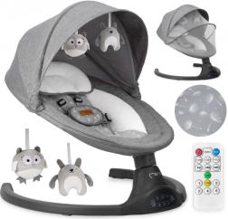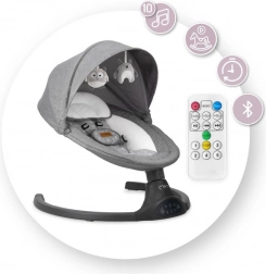Obsługa jest prosta i intuicyjna: wybierasz jedną z 5 prędkości kołysania, ustawiasz timer (8/15/30 min) i wybierasz 10 kojących melodii albo odtwarzasz muzykę przez Bluetooth. Cichy silnik nie zakłóca snu, a pilot zdalnego sterowania pozwala zmieniać ustawienia z kanapy.