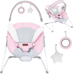 Wibrujące leżaczek jest wyposażone w trójpunktowe pasy bezpieczeństwa i mięciutkie aksamitne skrzydełka dla maksymalnego komfortu niemowlaka.