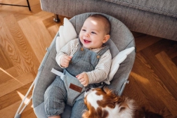 Leżaczek zawiera jednostkę sensoryczną z 8 melodiami i 3 poziomami wibracji, które zapewnią spokój i zabawę dla Twojego dziecka.