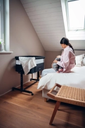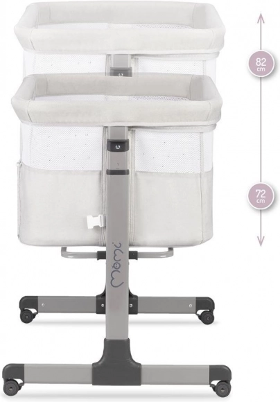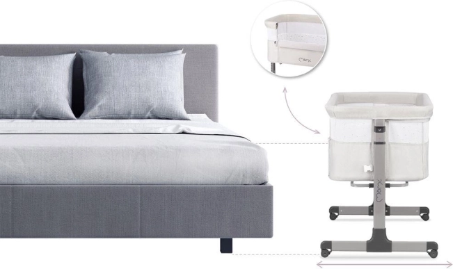 - Za pomocą sześciostopniowej regulacji ustawisz łóżeczko na odpowiedniej wysokości, utrzymując maluszka blisko i zapewniając sobie wygodę.