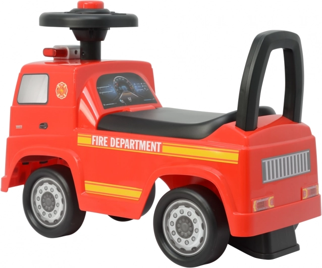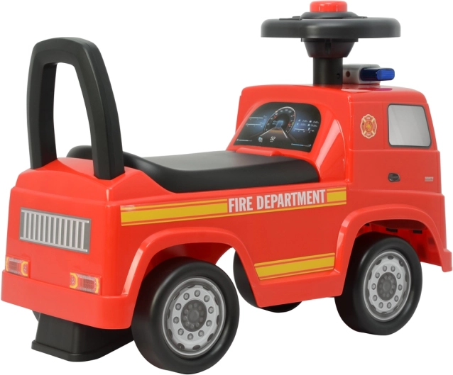 Dopracowane detale z napisem Fire Department, wyrazisty czerwony kolor oraz starannie wykonane felgi i reflektory zachwycą każdego małego kierowcę.