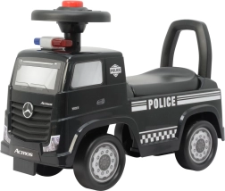 Stylowy dziecięcy jeździk MERCEDES Actros w policyjnym designie zapewnia zabawę w domu i na zewnątrz, wspiera rozwój motoryki oraz oferuje stabilną, lekką i wytrzymałą konstrukcję. Realistyczne detale, takie jak reflektory, grill i felgi, ucieszą każdego małego kierowcę.