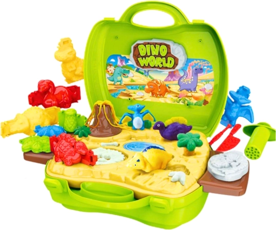 Odkryj kreatywny świat dinozaurów z zestawem z plasteliny w praktycznym zielonym kuferku. Dzieci stworzą własne figurki dinozaurów, sceny z prehistorii, a dzięki miękkiej, łatwej do modelowania masie rozwijają małą motorykę, kreatywność i koordynację oko–ręka. W zestawie znajdują się foremki, narzędzia oraz stanowisko do odcisków śladów dla realistycznych detali.