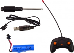 W zestawie znajduje się akumulator Li-ion 3,7 V 500 mAh oraz ładowarka USB. Jedno ładowanie zapewnia około 25 minut jazdy.