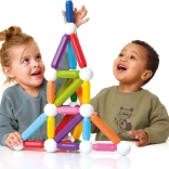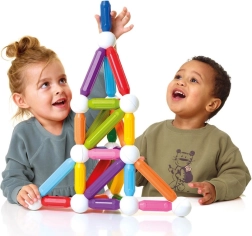Pałeczki i kule łączą się jednym „kliknięciem”. Dzieci szybko zbudują wieże, mosty i kreatywne kształty 3D bez zbędnej frustracji.