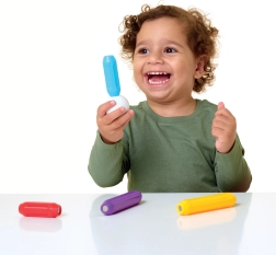 Magnetyczne pręty mają kształt zaprojektowany z myślą o łatwym chwytaniu przez małe dzieci, co ułatwia manipulację i wspiera rozwój motoryki.