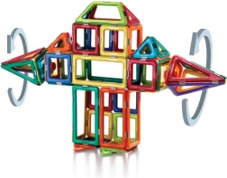 W zestawie znajduje się 70 elementów o różnych kształtach, co umożliwia dzieciom tworzenie nieskończonej liczby konstrukcji wspierających ich wyobraźnię i zręczność. Ten zestaw pomaga rozwijać wyobraźnię przestrzenną, koordynację, koncentrację oraz logiczne myślenie.