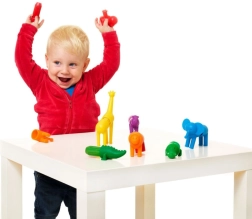 Dzięki różnym kolorom i kombinacjom dzieci mogą tworzyć prawdziwe zwierzęta lub eksperymentować i tworzyć nowe fantazyjne postacie. Elementy są wystarczająco duże i bezpieczne, wykonane z miękkiego, trwałego plastiku. Wszystkie części układanki są kompatybilne z innymi układankami SmartMax.