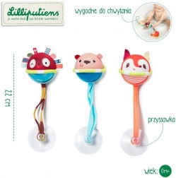Zestaw piłek do kąpieli od Lilliputiens jest łatwy do czyszczenia i szybkoschnący. Każda piłka ma postać zwierzęcia - Miś Cesar, Lemur George i Lis Alice, które są charakterystyczne dla marki. Piłki są lekkie, miękkie i unoszą się na wodzie, a dzięki paskowi na nadgarstek zawsze są w zasięgu ręki. Dzięki gumowym przyssawkom można je przyczepić do gładkich powierzchni, takich jak dno wanny.