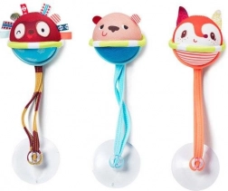 Piłki są wyposażone w gumowe przyssawki, które umożliwiają bezpieczne przyczepienie do gładkich powierzchni podczas kąpieli.