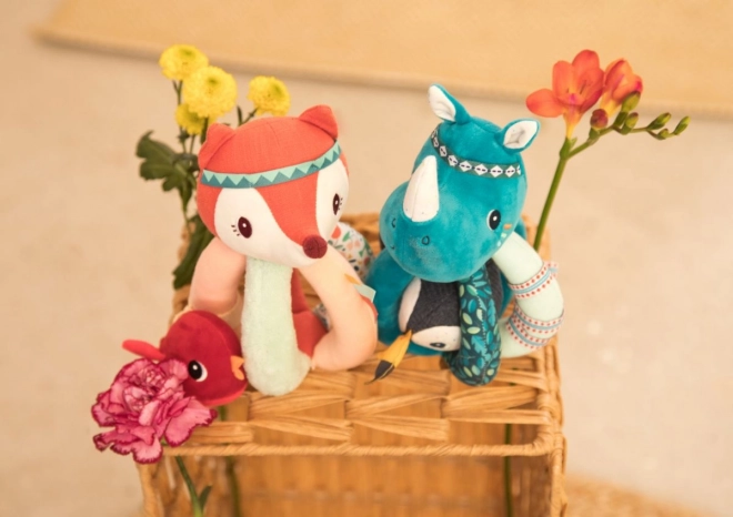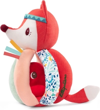 Urocza dziecięca grzechotka marki Lilliputiens w kształcie lisiczki Alice, która pilnuje małego czerwonego ptaszka. Oferuje mix faktur, dzwoneczek, szeleszczący papier oraz ukryte niespodzianki dla rozwoju zmysłów. Łatwa do chwytania małymi rączkami, jest mięciutka i przeznaczona do prania w 30 °C.