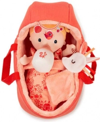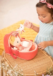 Dwustronny przenośny koszyk służy zarówno do zabawy, jak i odpoczynku lalki. Dziecko z łatwością zabierze ją wszędzie ze sobą.