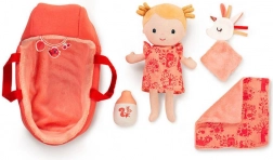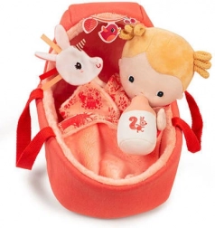 Zestaw wspiera małą motorykę, rozwój emocjonalny oraz wyobraźnię poprzez zabawę w rodzinę. Dwustronny koszyk z uchwytami ułatwia przenoszenie, a dwustronny kocyk służy jako kołderka i mata do przewijania. Lalkę można prać w 30 °C w delikatnym programie, aby pozostała świeża i gotowa na kolejne przygody.