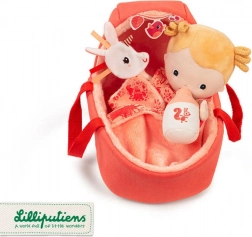 Urocza tekstylna lalka dzidziuś Lena marki Lilliputiens jest idealna do tulenia, usypiania oraz pierwszych zabaw w odgrywanie ról opieki nad bobasem. Zestaw zawiera dwustronny miękki koszyk z budką i uchwytami, kocyk–przewijak, mini przytulankę–jednorożca oraz pluszową buteleczkę z magnesem do realistycznego „karmienia”. Lalka ma zdejmowane ubranka, delikatne detale i jest bezpieczna od 12 miesięcy.