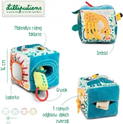 Wyrusz w przygodę z kostką Dżungla od belgijskiej marki Lilliputiens. Ta miękka i interaktywna zabawka zawiera:
