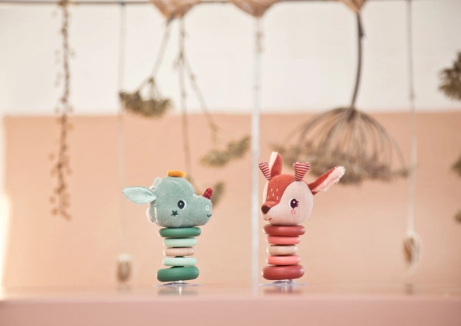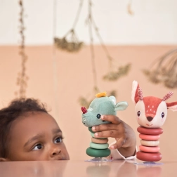 Jelonek Stella to niesamowicie zabawna zabawka, która porusza się przy najmniejszym dotyku. Jej tekstylna głowa i certyfikowane drewniane kółka zapewniają bezpieczeństwo i jakość. Odpowiednia dla dzieci od 6 miesiąca życia, co czyni ją idealnym towarzyszem dla najmłodszych.< /p>