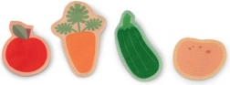 Zbierz jabłko, cukinię, marchewkę i ziemniaka, podnieś jajko, mleko, wełnę i miód. Odczepiane elementy na rzep oraz ukryte kieszonki zachęcają do odkrywania i ćwiczą motorykę małą.