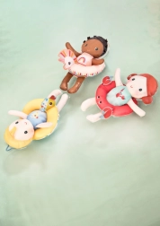 Urocza kąpielowa laleczka z kaczuszką Gaspard umili każdą kąpiel. Lekka i miękka, idealna do wanny i basenu, z kołem do pływania w kształcie kaczuszki oraz pętelką do szybkiego suszenia. Świetny wybór dla najmłodszych od 5 miesięcy.