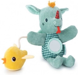 Aktywna pacynka smoka w zielonym kolorze z czerwonym rogiem i języczkiem jest świetna do opowiadania bajek, czytania i wyciszenia przed snem. Dzięki otworom w łapkach łatwo ją ożywisz i wciągniesz dziecko do zabawy. Zintegrowane elementy – grzechotka w główce, lusterko na brzuszku oraz szeleszczące kurczątko – dostarczają bodźców sensorycznych i świetnej zabawy.