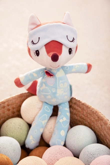 Poznaj delikatną przyjaciółkę do łóżeczka, lisiczkę Alice, która przynosi dzieciom spokój i poczucie bezpieczeństwa podczas wieczornego zasypiania. Jej magiczne piżamo i maska do spania po naświetleniu subtelnie się rozświetlają, tworząc kojącą atmosferę dla słodkich snów.