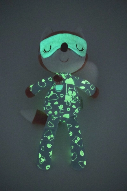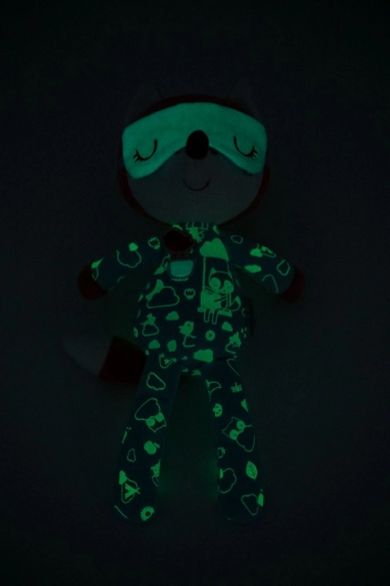 Urocza pluszowa towarzyszka do łóżeczka dla niemowląt i maluchów. Lisiczka Alice ma świecące piżamko i maskę do spania, które po naświetleniu delikatnie jarzą się w ciemności. Kojące światło pomaga dzieciom zasnąć i czuć się bezpiecznie. Zabawkę można prać w pralce w 30 °C na delikatnym programie. Wymiary ok. 19 × 10,5 × 30 cm.