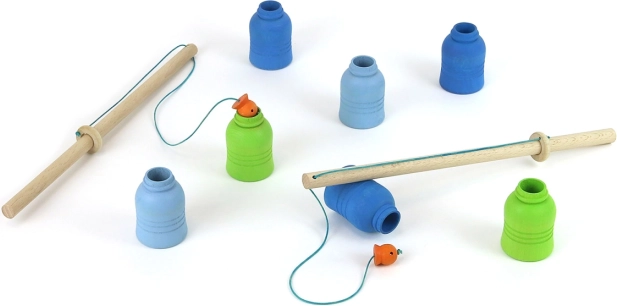 Zabawna i bezpieczna drewniana gra w łowienie ryb dla 2 graczy od 4 lat, która rozwija małą motorykę, koordynację oko–ręka i skłania dzieci do myślenia ekologicznego. Bez magnesów, z regulowaną długością żyłki dla łatwej zmiany poziomu trudności. Celem jest „wyłowić” drewniane butelki i symbolicznie uratować morze przed plastikami.