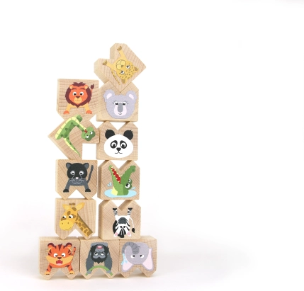 Ekologiczny i bezpieczny materiał: Zabawki wykonano z drewna z certyfikatem FSC®, co gwarantuje dbałość o środowisko.
