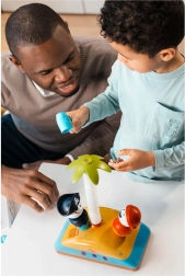 Wesołe kolory i ciekawe kształty elementów do gry przyciągają uwagę dzieci i pobudzają ich wyobraźnię.