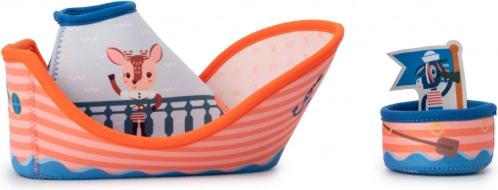 Wyrusz w fantazyjny rejs z najodważniejszym lwem Jackiem i jego załogą. Kolorowy piracki statek z miękkiego neoprenu został zaprojektowany tak, by wygodnie mieścić się w małych rączkach i zapewniać bezpieczną zabawę w wannie oraz przy basenie. Górną część statku z osiołkiem Ignacym można łatwo odłączyć – dzieci zyskują jedną większą i jedną mniejszą jednostkę do urozmaiconej zabawy i rozwijania wyobraźni.