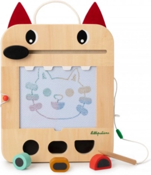 Magiczna tablica wilka Ludwika to idealna kreatywna zabawka dla przedszkolaków. Dzieci mogą rysować, stemplować i wykonywać zadania z dołączonych kart, które rozwijają małą motorykę, cierpliwość oraz percepcję sensoryczną. Dzięki praktycznemu uchwytowi łatwo ją przenosić, a drewniany ołówek przymocowany sznurkiem się nie zgubi.