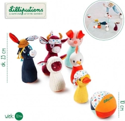 Odkryj urok miękkich kręgli Lilliputiens z kolekcji Farma. Pogodni bohaterowie – osiołek Ignace, krówka Rosalie, prosiaczek Simon, owieczka Yvon, kurka Paulette i kaczor Gaston – mają stabilny spód z lekkim obciążeniem, więc łatwo je ustawić i równie łatwo strącić. W zestawie znajduje się także kolorowa pluszowa piłeczka z dzwoneczkiem, która zachęca do rzucania i turlania.