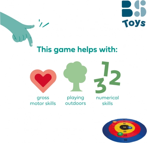 Gra wspiera rozwój umiejętności motorycznych, koordynacji oko–ręka oraz podstaw matematyki podczas zliczania punktów. Idealna do przedszkoli, świetlic szkolnych, na obozy i do domowej zabawy w ogrodzie.
