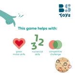 Ta prosta i wciągająca gra rozwija precyzję, cierpliwość i umiejętność współpracy. Gracze na zmianę rzucają obręcze na haki na drewnianej tarczy o średnicy 30 cm i zdobywają punkty w zależności od miejsca trafienia. Można grać indywidualnie lub tworzyć drużyny i cieszyć się przyjazną rywalizacją.