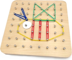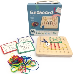 Geoboard to interaktywna i edukacyjna zabawka dla dzieci od 4 lat, która rozwija zdolności manualne i kreatywność. Dzięki kolorowym gumkom i metalowym gwoździom dzieci mogą łatwo tworzyć różne kształty i wzory.