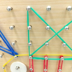 Dzieci mogą tworzyć podstawowe kształty geometryczne, uczyć się symetrii i wzorów lub zaprojektować unikalne obrazy. Geoboard jest także świetnym narzędziem do nauki liczenia i mierzenia.
