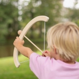 Zawartość opakowania obejmuje drewniany łuk o wymiarach 40 × 13 cm, trzy strzały o długości 26,5 cm oraz materiałową tarczę o wielkości 26 × 29,5 cm. Produkt został zaprojektowany tak, aby był bezpieczny, a jednocześnie zapewniał prawdziwe wrażenia z łucznictwa. Uwaga: Nieodpowiednie dla dzieci poniżej 36 miesięcy ze względu na małe elementy, które mogą zostać wdychane lub połknięte. Używaj wyłącznie strzał dołączonych do zestawu i przestrzegaj zasad bezpieczeństwa.