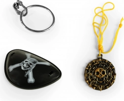 - Plastikowa szabla, piracka opaska na oko, medalion na sznurku, kolczyk do ucha
