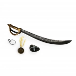 - Kompletne opakowanie: szabla, opaska na oko, medalion na sznurku i kolczyk do ucha.