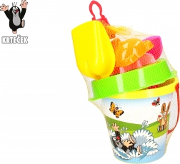 Zabawny zestaw do piasku z motywem KRECIEK ucieszy każdego małego budowniczego. Żółty zestaw zawiera wifiaderko 1,5 l, sito, łopatkę, grabki oraz 2 foremki – idealny do zabawy w piaskownicy i na plaży. Odpowiedni dla dzieci od 3 lat.