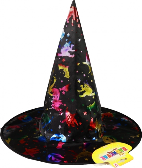 Przygotuj się na Halloween lub imprezy tematyczne z tym czarodziejskim kapeluszem. Kapelusz jest czarny, z holograficznymi wzorami przedstawiającymi nietoperze i gwiazdy — idealny dla każdego, kto chce wyglądać wyjątkowo.