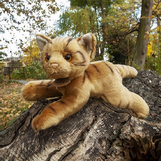 Ten leżący pluszowy kot zachwyci każdego miłośnika zwierząt. Dzięki delikatnemu, wysokiej jakości pluszowi i starannemu ręcznemu wykończeniu wygląda realistycznie i jest świetnym towarzyszem do przytulania i zabawy. Ekologiczne podejście czyni go idealnym wyborem dla rodzin dbających o naturę.