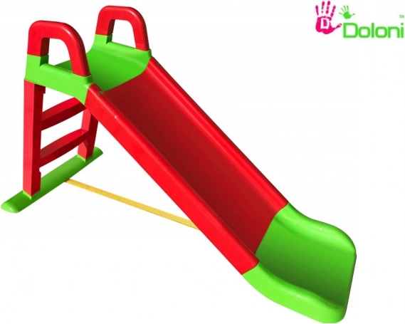 Zjeżdżalnia DOLONI 140 cm w czerwono‑zielonej wersji kolorystycznej to świetny wybór na pierwsze zjeżdżalniane przygody. Oferuje bezpieczny chwyt dzięki uchwytom, przyjemnie szeroką powierzchnię ślizgu oraz wytrzymały plastik, który łatwo się czyści i jest lekki w obsłudze.
