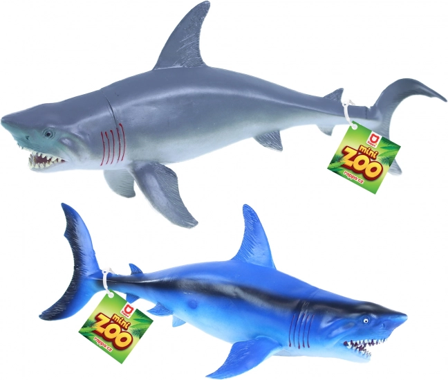 Plastowy rekin o długości 34 cm, dostępny w dwóch różnych wariantach. Idealny do dziecięcych zabaw i celów kolekcjonerskich.