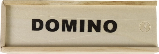 Drewniane domino w pudełku dla 2–4 graczy. Rozwija logikę, zabawa dla dzieci i dorosłych. 24 kamienie, kompaktowe opakowanie idealne w podróż. Wiek 3+.