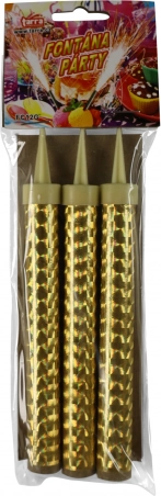 Stylowa pirotechniczna dekoracja na urodziny, Sylwestra i garden party. Każda fontanna tworzy efekt złotych iskier, które dodają Twojemu wydarzeniu uroczystej atmosfery. Praktyczne opakowanie po 3 sztuki zapewni wystarczająco efektów na wiele momentów.