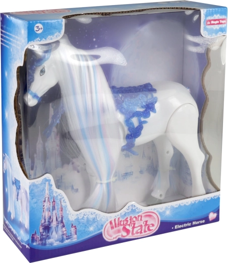 Przedstawiamy elektrycznego konia z kolekcji Królestwo Zimy, który jest idealnym towarzyszem dla małych miłośników bajek i fantazji. Ten magiczny koń oferuje następujące funkcje: